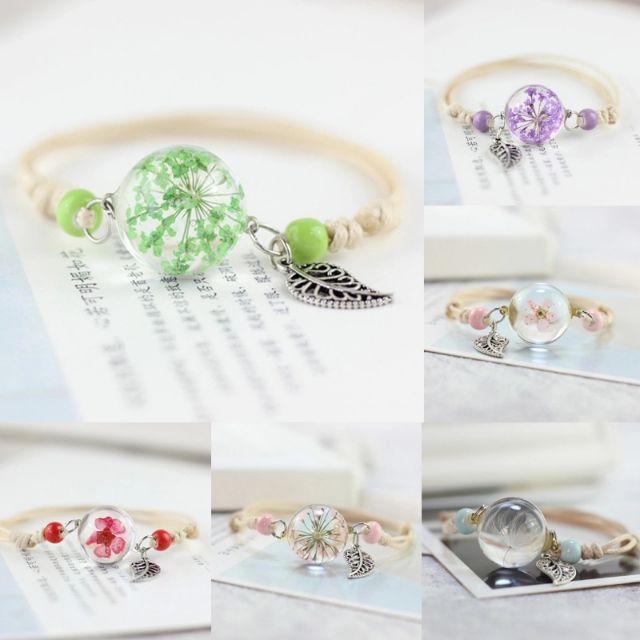 กำไลดอกไม้แห้ง (มีหลายแบบ เลื่อนดูรูปนะคะ ) • กำไลปรับขนาดได้ • ดอกไม้จริง ทำแห้งแล้ว ไม่เหี่ยวลง และ สีไม่เปลี่ยนค่ะ •• สี ขนาด และ ทรงกลีบของดอกไม้อาจแตกต่างกันในแต่ละชิ้น เนื่องจากเป็นดอกไม้จริงจากธรรมชาติ •• กําไลข้อมือ ดอกไม้แห้ง
