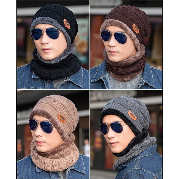 (พร้อมส่ง 4 สี) เซ็ตกันหนาวจ้า : หมวกกันหนาว และผ้าคลุมคอกันหนาว