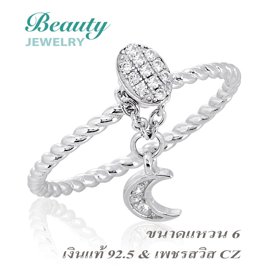 รีวิวสินค้า Beauty Jewelry แหวนเพชรสไตล์อินเทรนด์ เงินแท้ 925 ประดับเพชรสวิส CZ รุ่น RS2099-RR เคลือบทองคำขาว