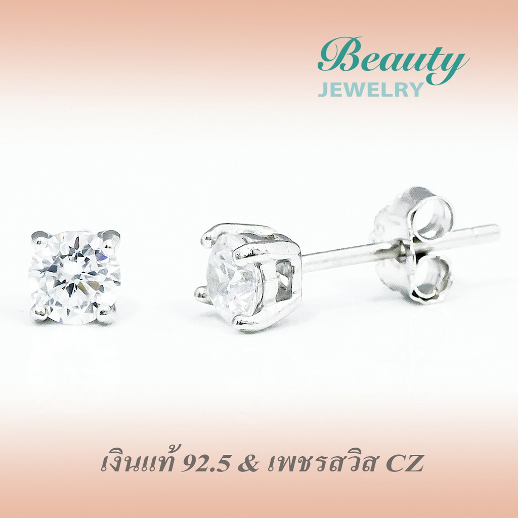 - เช็คราคา >> Beauty Jewelry ต่างหูเพชร CZ เงินแท้ 925 sterling slver ประดับเพชรสวิส CZ ขนาด 4MM รุ่น ES2024-4W เค