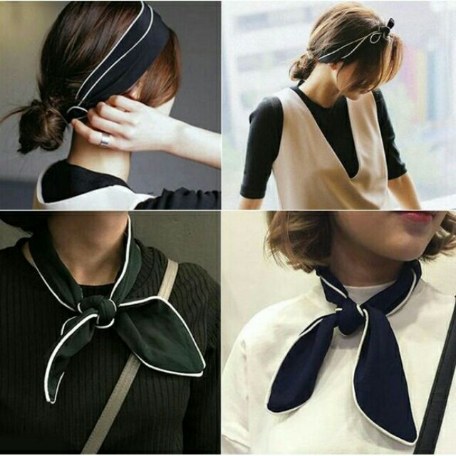 ผ้าผูกคอ+ผ้าผูกผมสีพื้น สไตล์เกาหลี