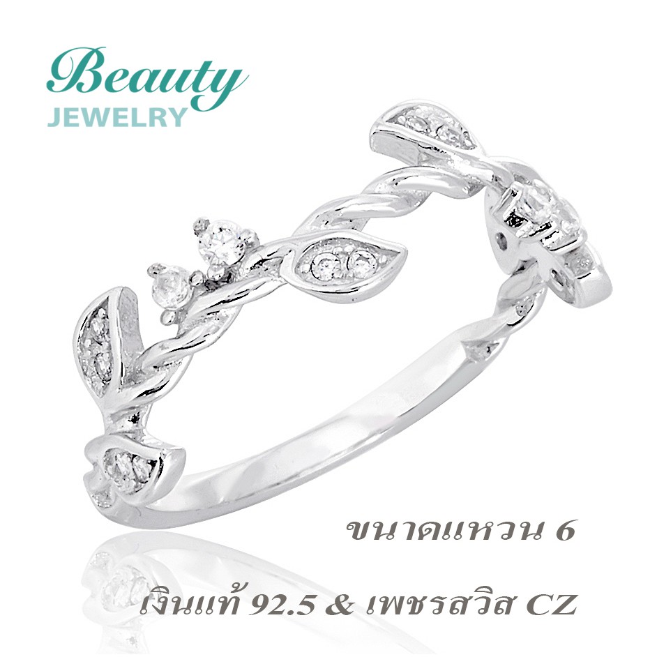 - ชื่อสินค้า Beauty Jewelry เงินแท้ 925 แหวนเพชรใบมะกอก ใบแห่งความสำเร็จ ประดับเพชรสวิสรุ่น RS2091-RR เคลือบทองค