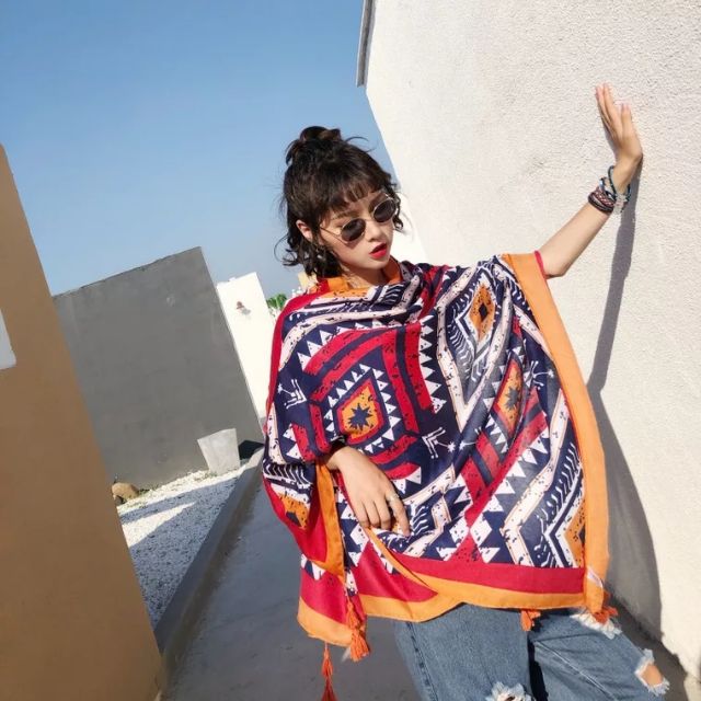 - ราคา ลายใหม่ ชนเผ่าส้ม ผ้าคลุม สีสวย ผ้านิ่ม ใส่เที่ยวทะเล ลายสวยคลาสสิค