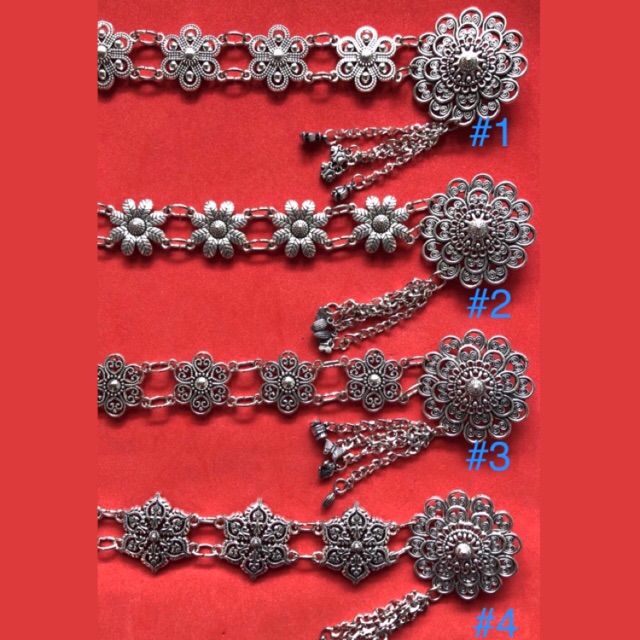 เข็ดขัดเงินลงยา เครื่องประดับเหมาะกับผ้าไทย ผ้าพื้นเมือง สามารถสวมใส่ได้ถึงเอว ขนาด 40” ราคาส่งกรุณาเลือกส่งแบบ ผู้ขายทำการจัดส่งให้ นะค่ะ เข็มขัดเงิน เครื่องประดับ ผ้าไทย ผ้าพื้นเมือง เครื่องประดับเงินลงยา หัวขัดผ้าซิ่น หัวขัดผ้าถุง เข็มขัดเงินผ้าไทย เครื่องประดับเงิน หัวรัดซิ่น ราคาส่งถามได้ค่ะ หลายเส้นก็ลดได้นะค่ะ