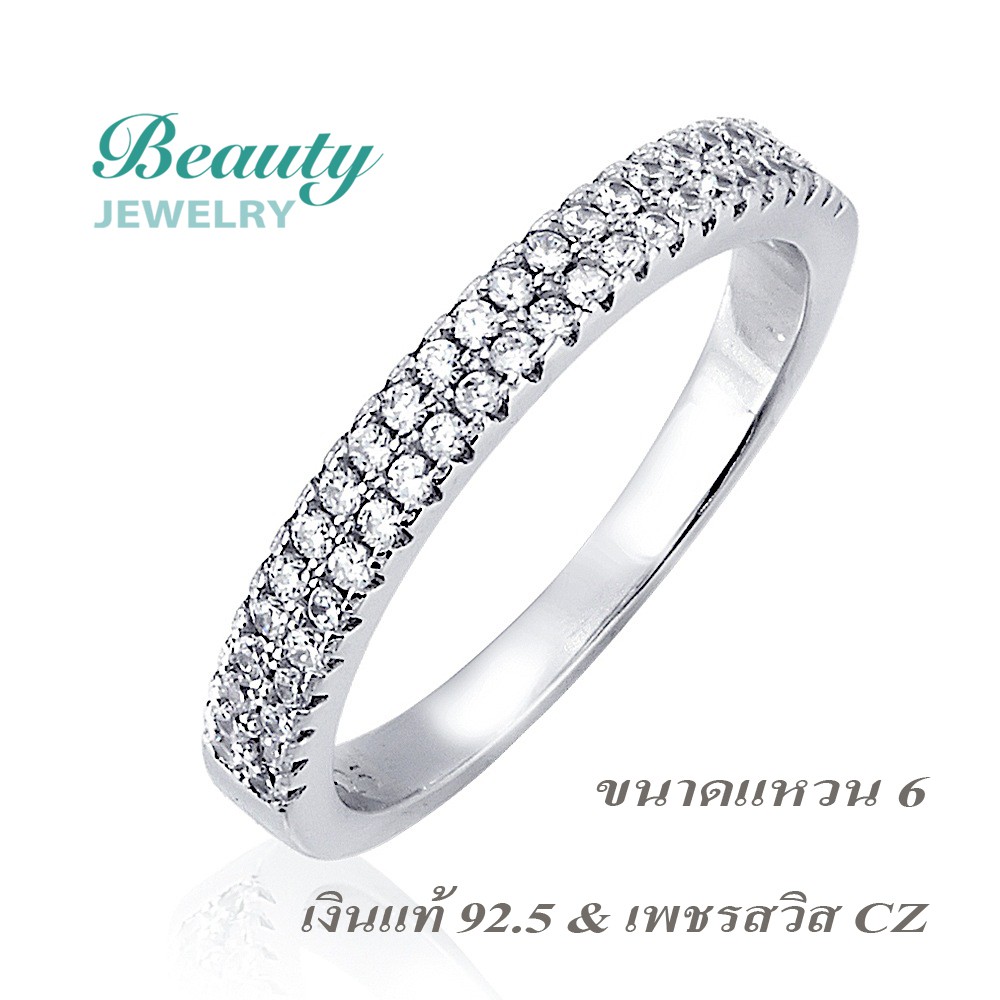 - ราคา Beauty Jewelry แหวนเพชรสไตล์คลาสสิค เงินแท้ 925 sterling silver ประดับเพชรสวิส CZ รุ่น RS2076-RR เคล